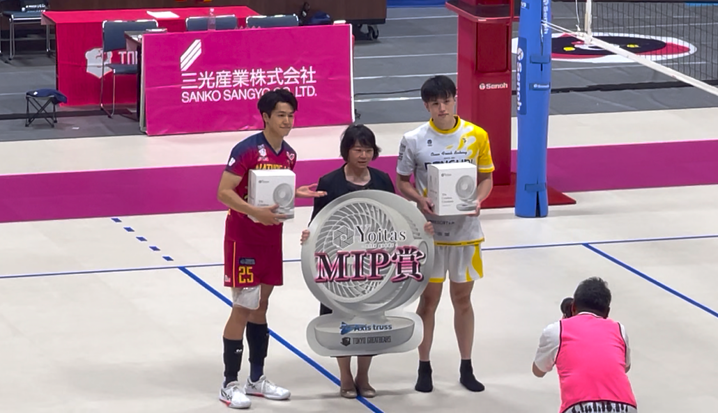 また、試合MIP(Most Impressive Player)には、弊社製品「サーキュレーター」を贈呈いたしました。[