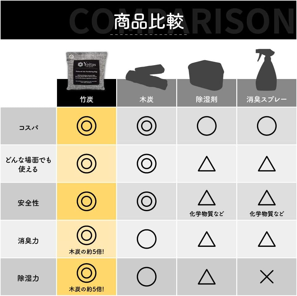 - 【Yoitasこだわり『竹』】天然の消臭剤・除湿剤!Yoitas竹炭パックの『竹』は発芽から約5年、全長約13mの肉厚な天然孟宗竹のみを使用しており、箸や食器などにも使う竹と同じ竹を使用。