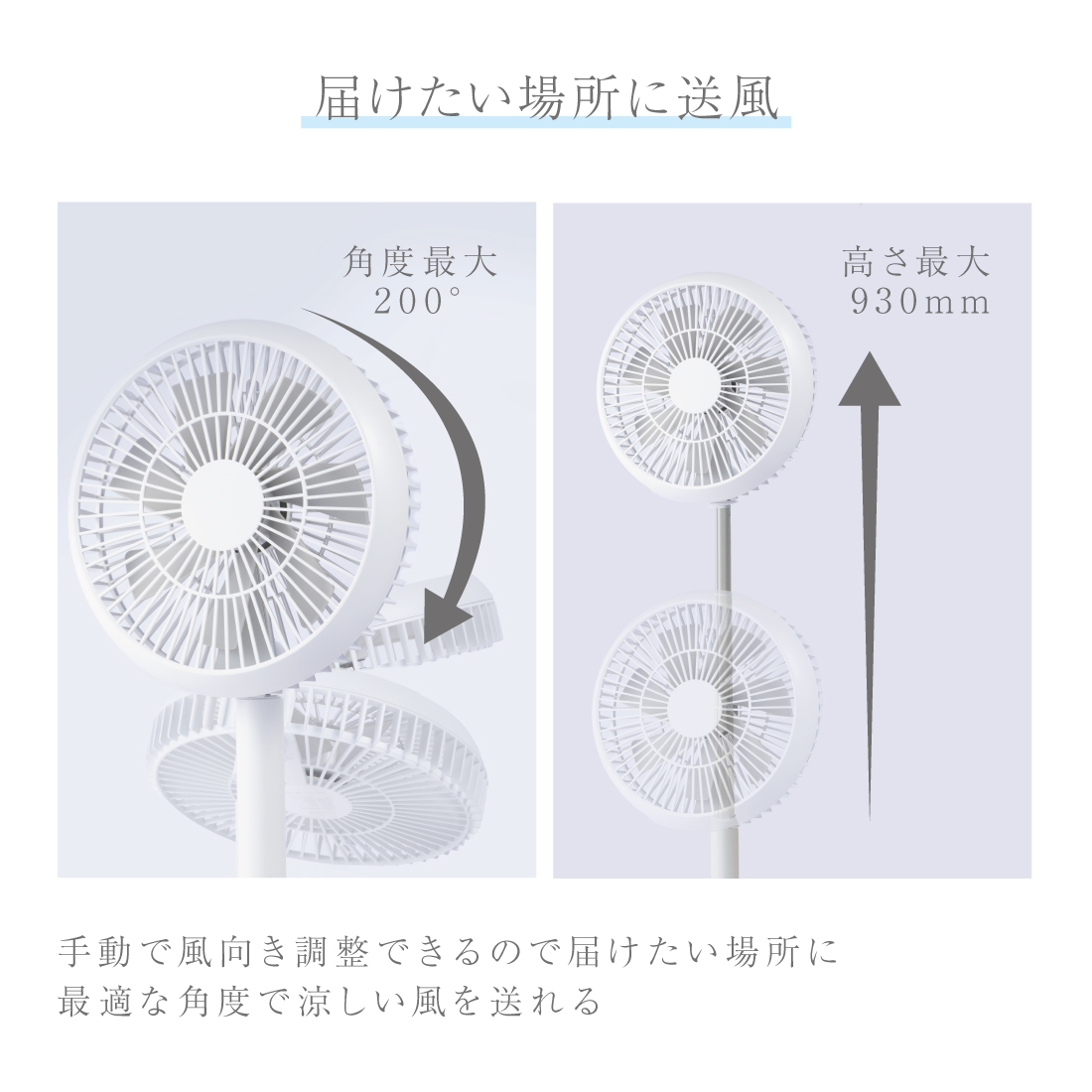 - 【93mmから930mmの脅威の伸縮機能】最小サイズ93mm、壁掛け扇風機から、コンパクトサイズの卓上扇風機、最長サイズ930mm、リビングサイズのフロアファンまで伸縮自在のインドア、アウトドア利用可能な多機能扇風機です。