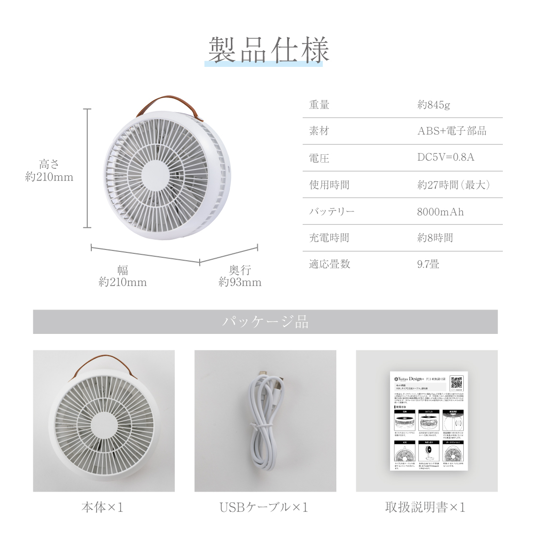 - 【コードレス 最大約27時間連続稼働】8000mAhのリチウムイオンバッテリーを搭載しており、最大約27時間の連続稼働が出来るコードレスタイプの扇風機です。室内でも寝室、リビング、書斎など様々のシーンでご利用いただけます。