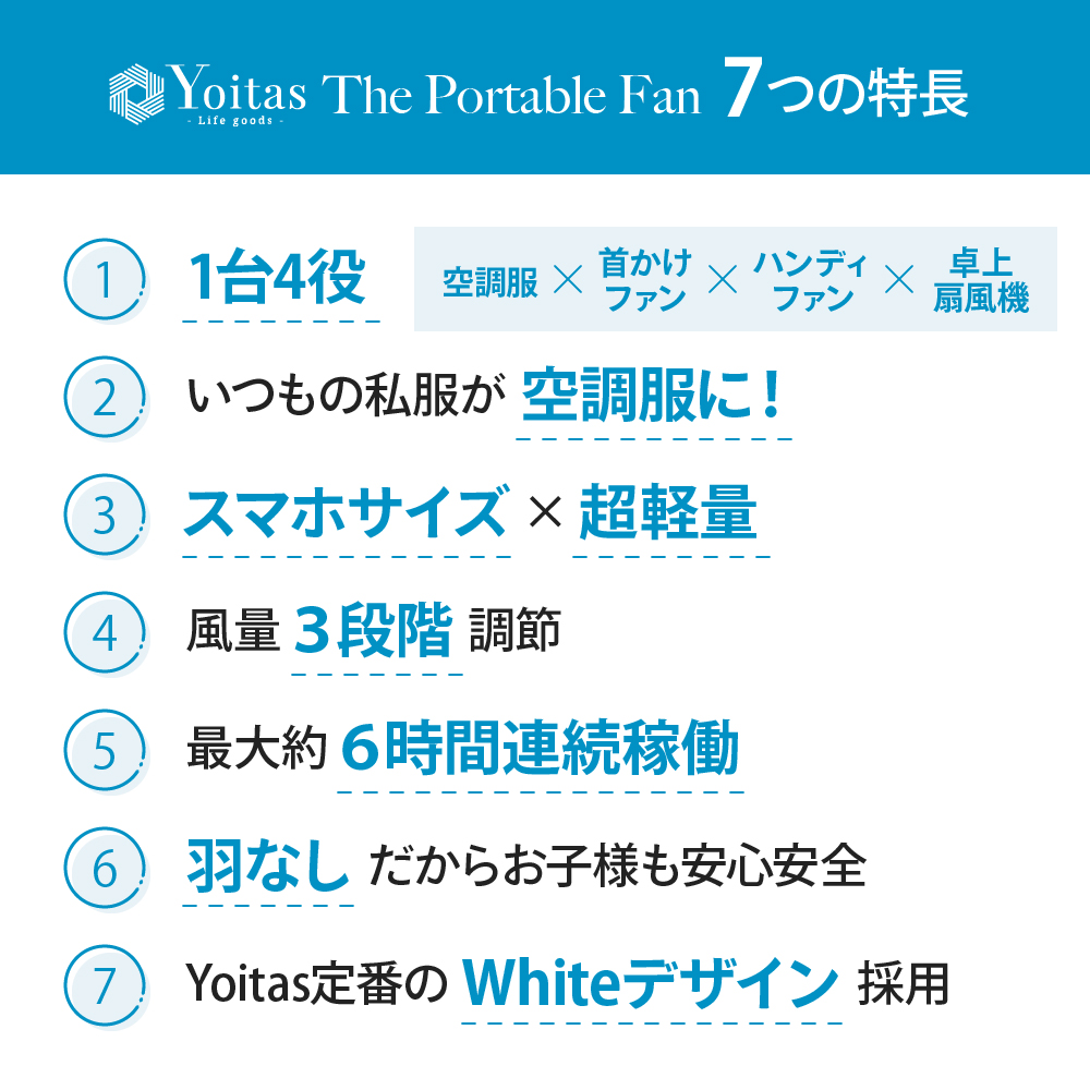 - 【薄型1台4役扇風機】ベルトファン(腰掛け)・ネックファン(首かけ)・ハンディファン(手持ち)・デスクファン(卓上)のそれぞれいいとこどりしたコンパクト携帯扇風機。様々なシーンに合わせてお使いいただけます。